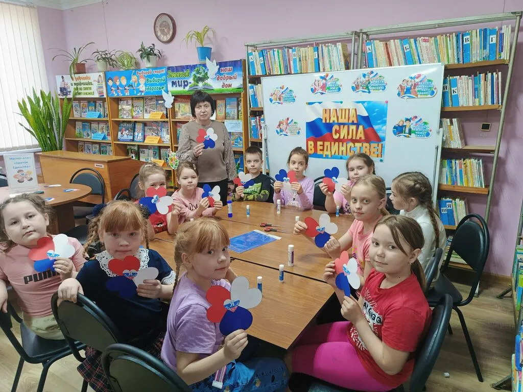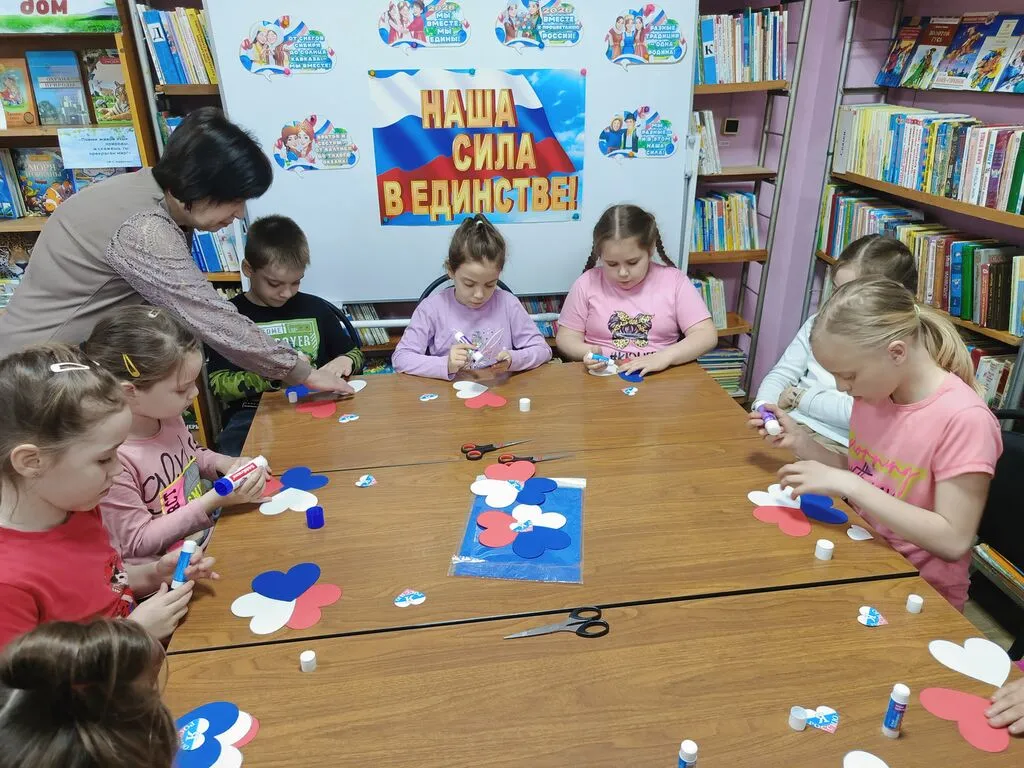 В рамках проекта «Библиосумерки» для детей младшего возраста был проведён мастер-класс «Цветок Единства».